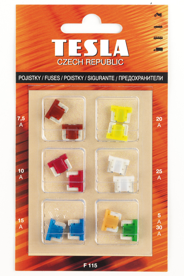 Набор предохранителей Tesla Extra Mini из 12 шт. 5А->30А (F115)